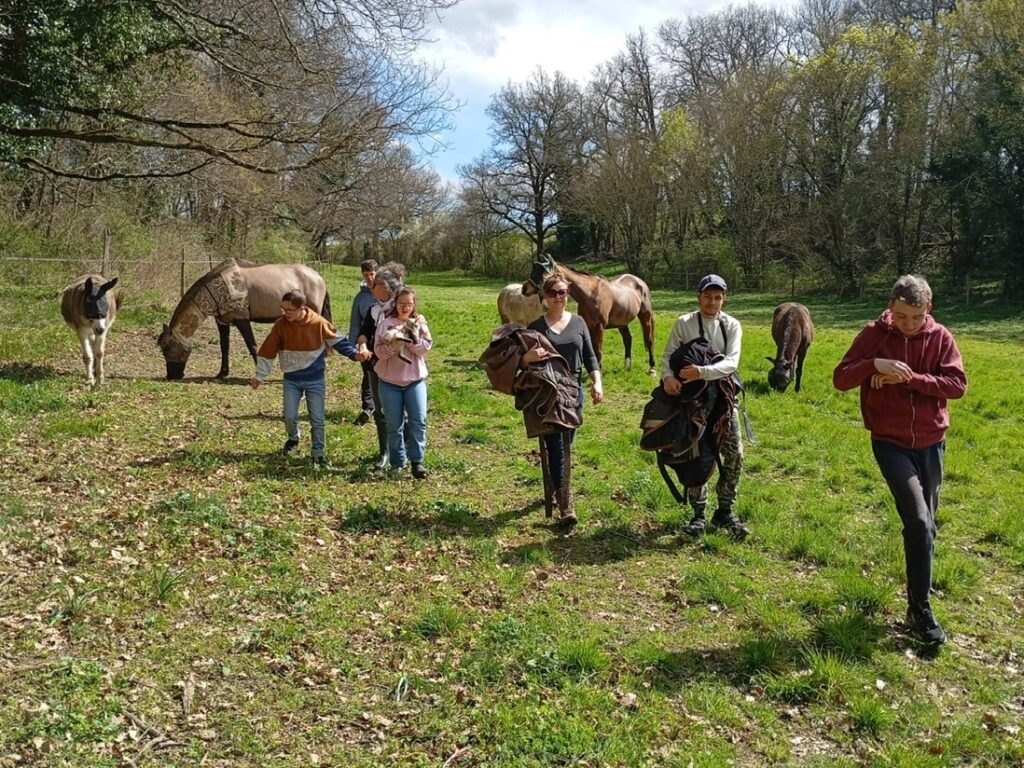 – soins aux animaux (médiation animale) : chèvres, poneys, poules
